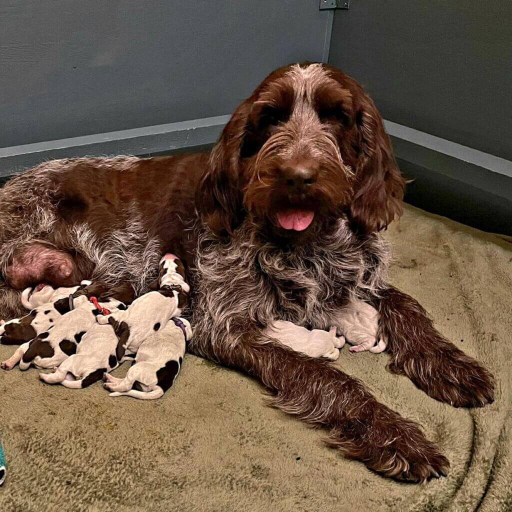 Wir begrüßen mit Familie Hommen acht lebhafte Spinone Welpen im Leben und gratulieren herzlich zu diesem schönen Wurf!