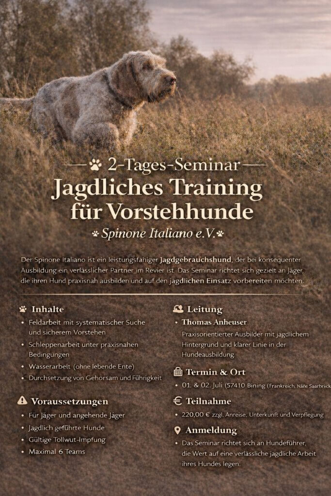 Bitte meldet Euch bei Interesse frühzeitig bei der Zuchtleitung Ilka Kreft zuchtleitung@spinone-italiano-ev.de